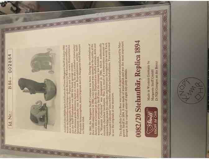 Authentic, original Steiff Roly-Poly Circus Bear in original box. 1984 limited edition reproduction from 1894 original doll.