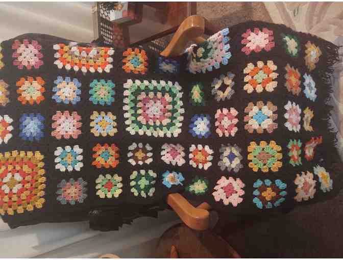 This beautiful colorful afghan was lovingly made by my mother many years ago. It has never been used as I have many of her lovely hand crafted items. It measures 48" x 64".
