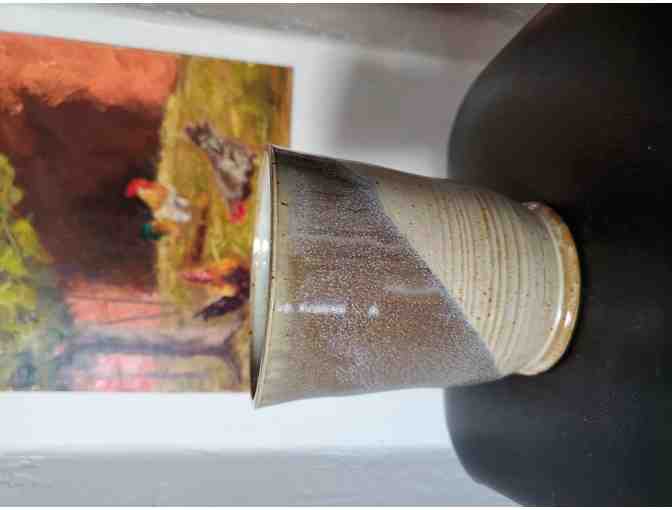 Small ceramic vase, perfect for flowers from your garden. This vase is two toned with a light matte off white color and a purple/grey.