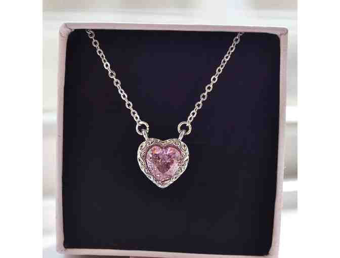 Delicate enough to layer and beautiful enough to stand on its own. Chain is 17 inches long with a tiny paw print at the end. Material is silver plated, with pink stones.