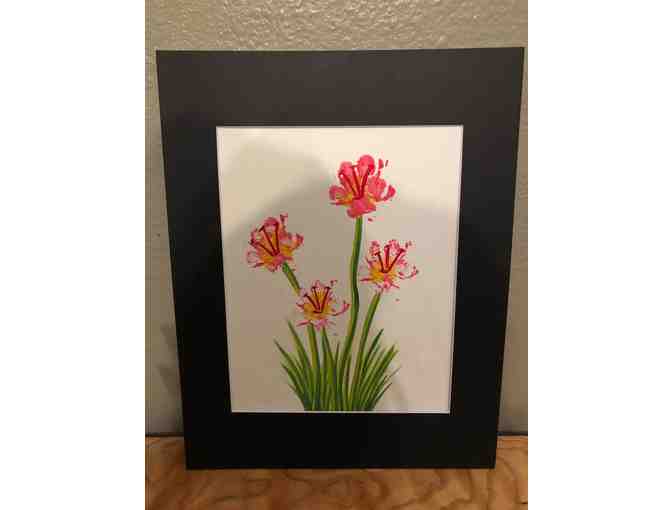 One of a kind! Printed paw prints turned into flowers. These prints are matted in an 11 x 14 frame with a clear plastic sleeve and include a photo of the furry artist on the back.