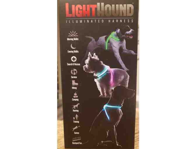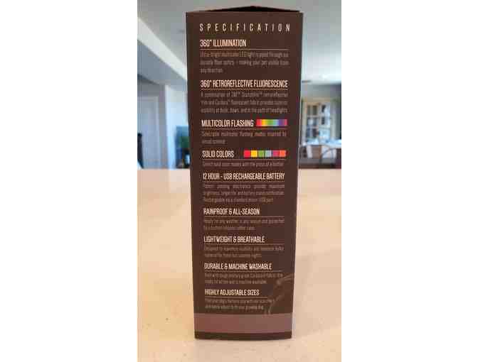 Keep your Best Friend safe and highly visible with this durable and machine washable Harness. Dawn, Dusk or nightfall the rechargeable 12 hour battery wraps your pup in full 360 degree illumination. The single harness posted here for auction fits a Large Dog. See photo measurement guide for details.