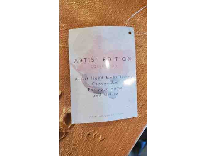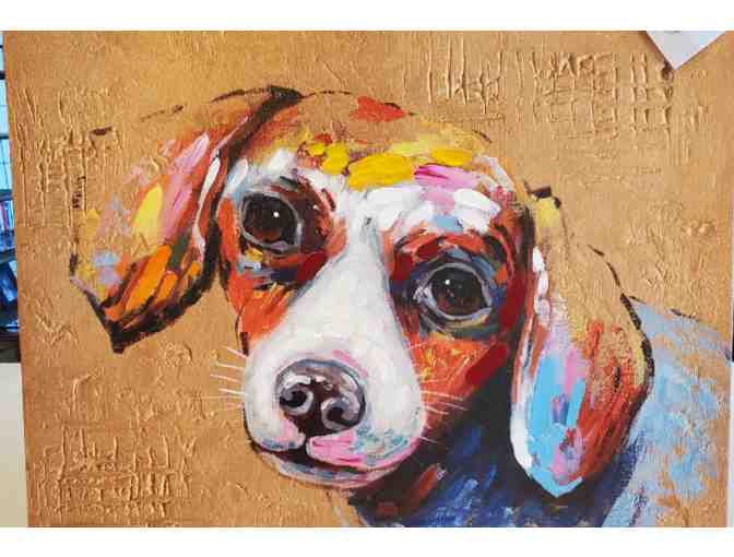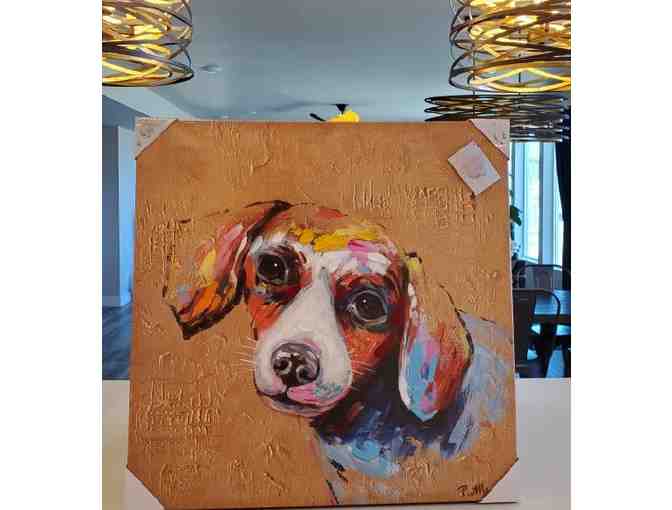 Artist Hand Embellished Canvas Art - Artist Edition Collection. 28"x28" canvas print. This unique piece reflects the spirit of every dog that has given Love and Devotion selflessly and without boundaries to their human companions. Return that in kind by bidding on this print and supporting NMDR so they can continue to Rescue, Rehabilitate and Rehome so many Lovable and deserving Dogs.