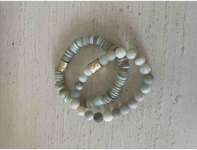 Amazonite and shell stretch bracelets