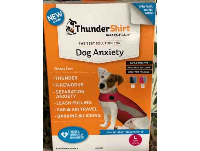 ITEM DESCRIPTION: THUNDERSHIRT uses gentle hugging to calm your anxious, fearful, or overexcited dog making them feel more comfortable in situations that were once frightening. Lightweight polo; Soft, breathable, washable fabric.