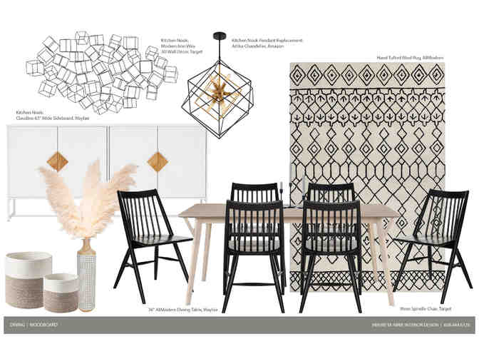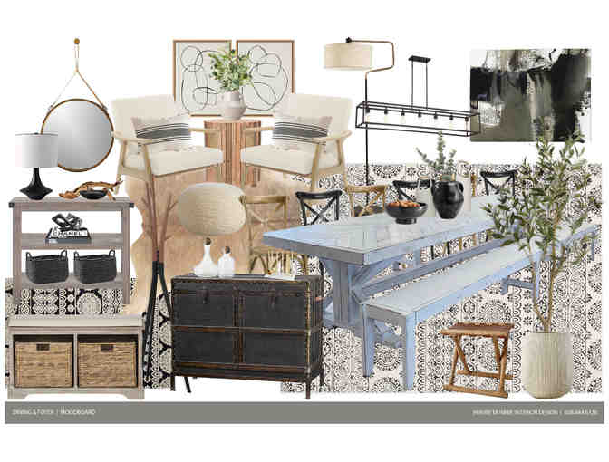 - 1 Moodboard showing all proposed and existing furniture and decor selections comprehensively on one visual,