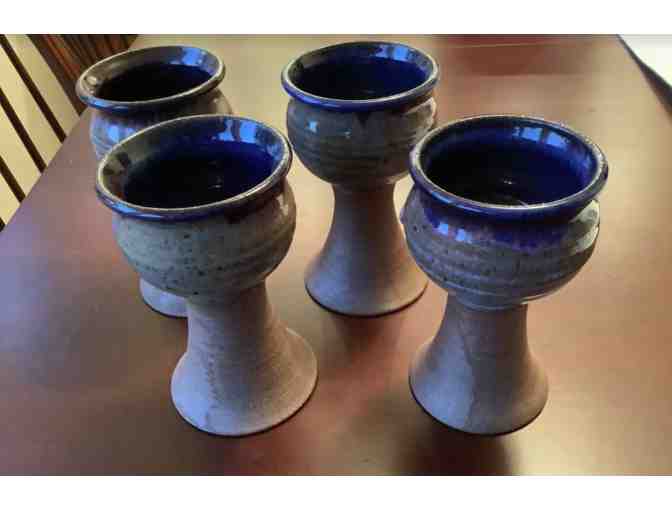 Please enjoy 4 hand-made, beautifully glazed wine goblets made by a local Sonoma artist.