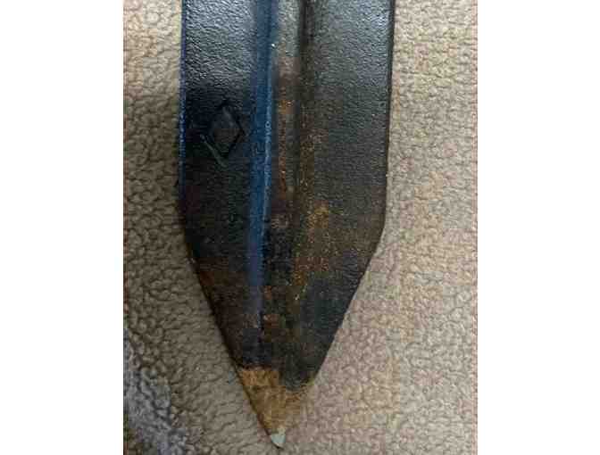 In used shape. No cracks or chips. Rust is 3" high on bottom of stake. Very light rusting on top.
