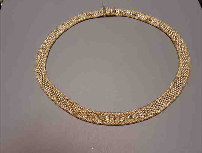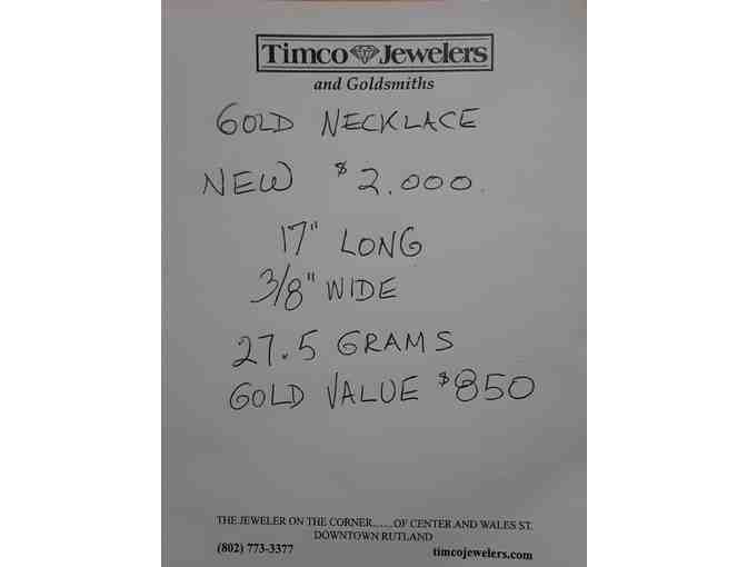Enjoy this gorgeous 27.5-gram gold necklace that measures 17" in length, 3/8" in width. This necklace is gorgeous and has no flaws.