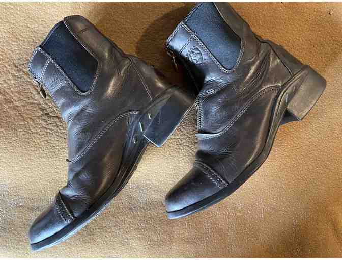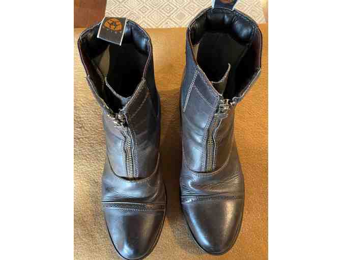 Sophisticated and sleek, these paddock boots provide the cushioning and traction you need in the saddle and out. Zipper front, full-grain leather upper.