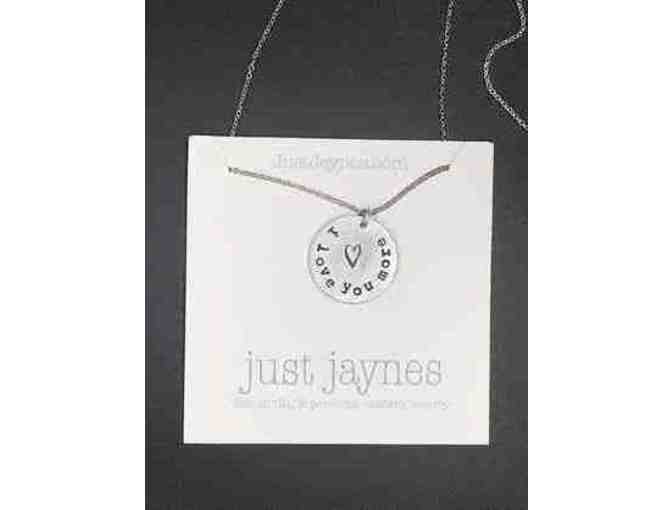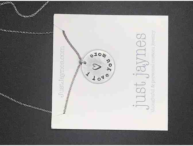 Who has said this to your child or grandchild, or has memories of it being said to you, growing up? This 18" silver chain and pendant by Just Jaynes captures the love we hold in our hearts for those dear to us, in a timeless, everlasting piece that can be handed down generation to generation.