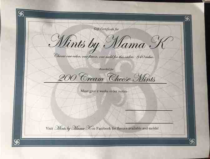 You can be the recipient of 200 Homemade cream cheese mints! The kind that used to be found only at weddings is not so limited anymore! Graduations, showers, special holidays, or just because you want to share with your co-workers or family! Two weeks' notice requested, from winning bidder! Visit Mints By Mama Facebook Page for flavors and available molds!