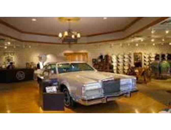 As you depart the Mansion, you'll be free to stroll through the ranch grounds. Be sure to stop and visit Lincoln's and Longhorns where you'll find Jock Ewing's original 1978 Lincoln Continental. Guests can shop here for Dallas-inspired men's and ladies apparel, decor, and accessories.