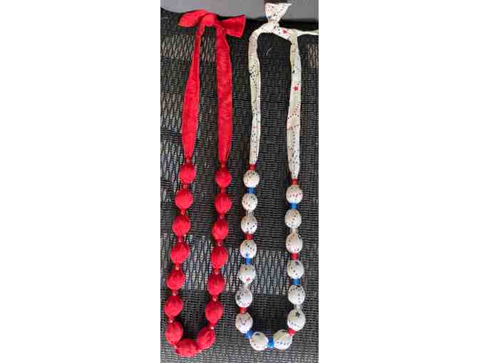 These necklaces are perfect for any 4th of July or patriotic events! Cute handmade fabric necklaces.