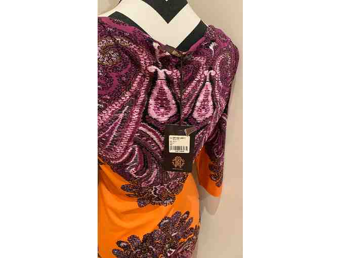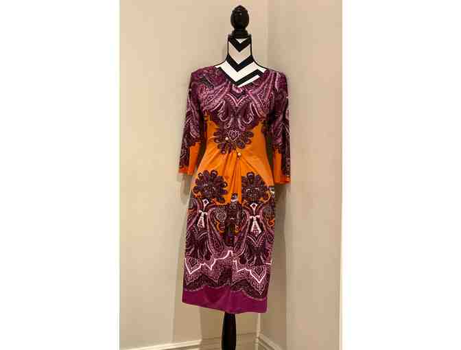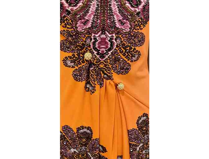 Step out in style and prepare to dazzle in this stunning Roberto Cavalli Pattern Dress with gold pin. New, never worn, with tag! Original purchase price $2,200!