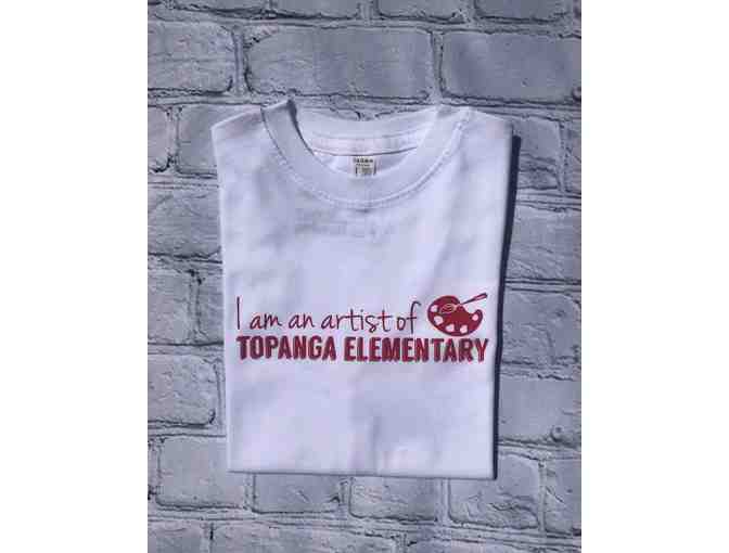 T-shirt that says "I am an artist of Topanga Elementary" - multiple sizes and colors. T-shirt is super soft cotton blend and slimmer in cut.