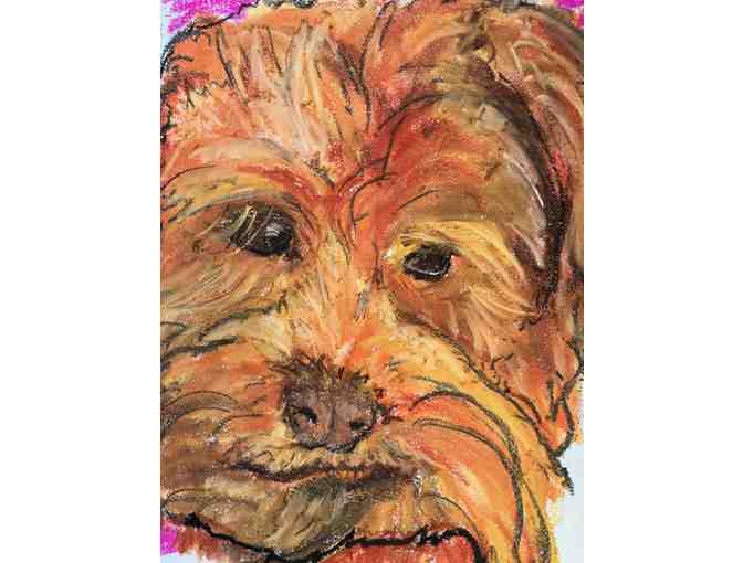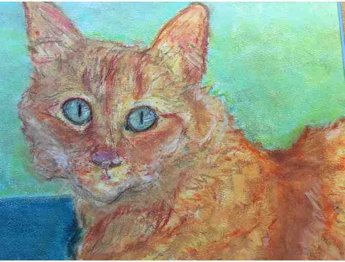 An 11x14 soft pastel, whimsical interpretation of your, a friend's, or family member's pet, or animal of your choosing. Comes matted and framed.