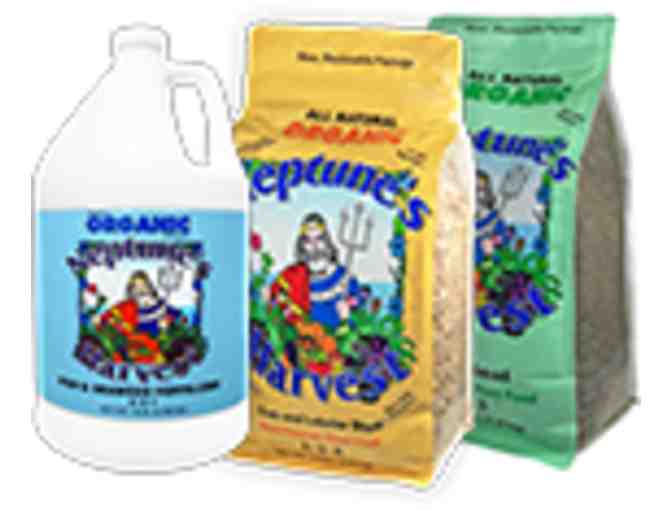 Gallon of Fish & Seaweed, 4 lb. bag Crab & Lobster Shell, and 4 lb. bag of Kelp Meal. Also, 4 oz. bottle of Best Yet Cedar insect repellent, 1 shirt, 1 hat, 2 koozies, and 2 stickers. Comes in a nice canvas gardening bag.