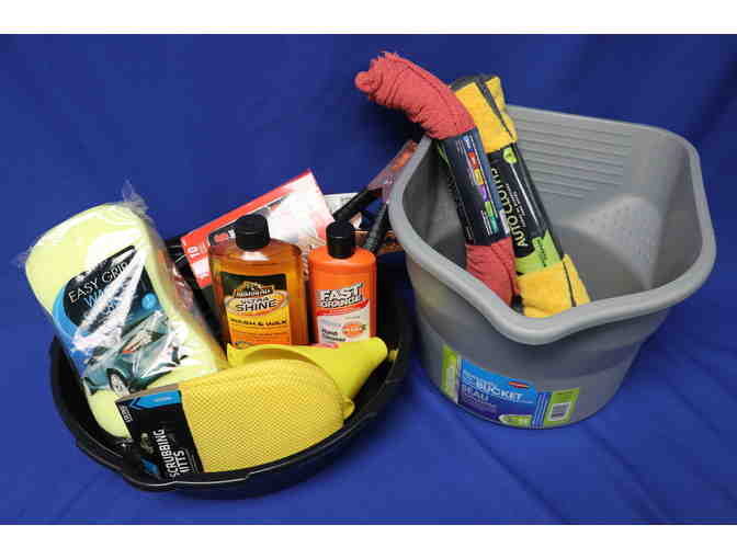 Basket Includes: Wash sponge, scrubbing mitts, Wash & Wax, auto clothes, and more!