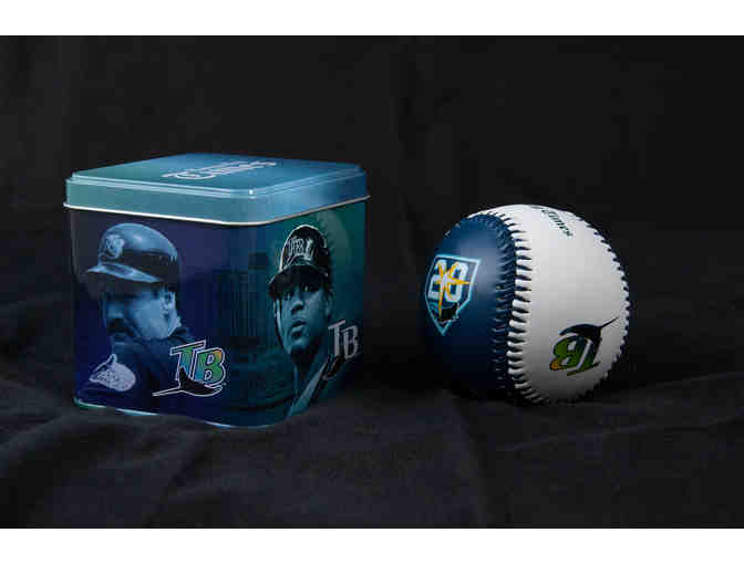 This special edition commemorative baseball features the Rays and Tampa Bay Times logos on one side and the Devil Rays and St. Petersburg Times logos on the other. A special edition commemorative tin is included.