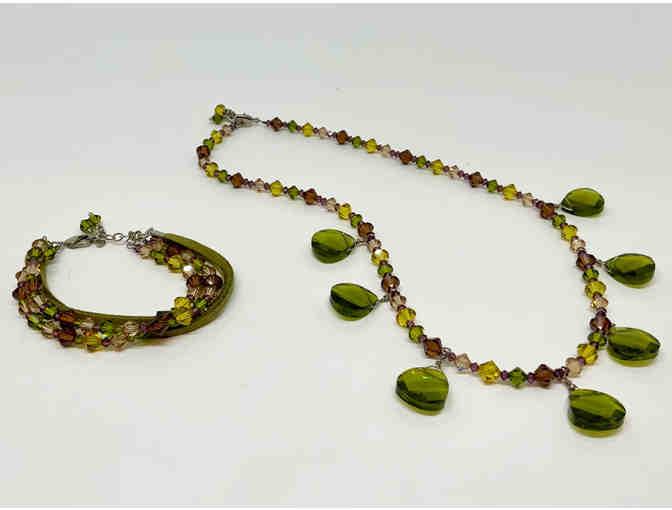 The Bohemian Bayou Swarovski Set comes with an 18 inch earth-toned necklace with a 1.5 inch extender accented by and a 7 inch earth-toned bracelet with a 1.5 inch extender and a suede strap. Beautiful gift or addition to you collection.