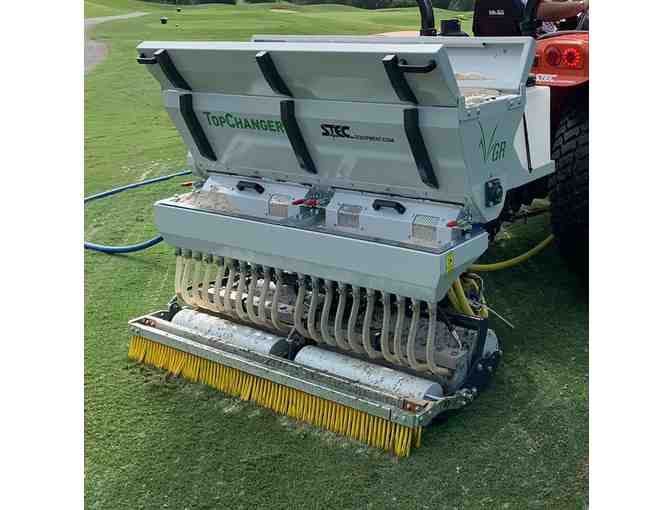 The GKB Sandfiller is the most innovative machine for thatch removal and sand backfilling. STEC Equipment is proud to feature a machine that has the ability to verticut, collect dispatched material, and sandfill in the same pass. Perfect for greens applications ranging from na'ive soil renovation to sand cap maintenance. Having a series of three low impact rollers allows it to float on uneven terrain and easily follow the contours of the turf. With a working depth of 2", able to hold over 500 lbs. of sand, this machine is designed to work efficiently without the need to continually refill.