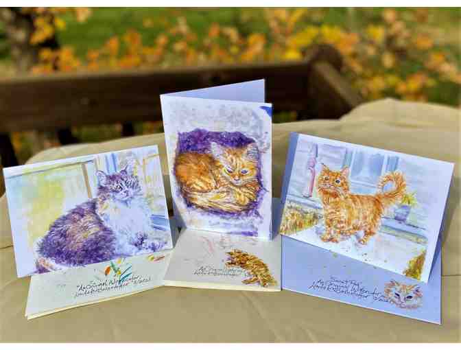 Send a beautiful hand written note - Bid on this kitten inpsired note card set by pet portrait artist Linda Branstetter.