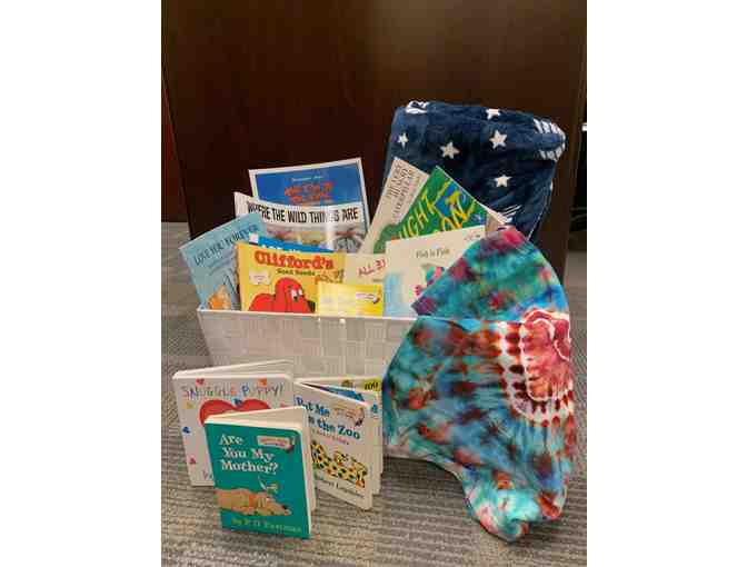 It's Story Time with this great basket of childrens books. Snuggle up and read! Wear this great Tie Dye and create your own story about the colors!