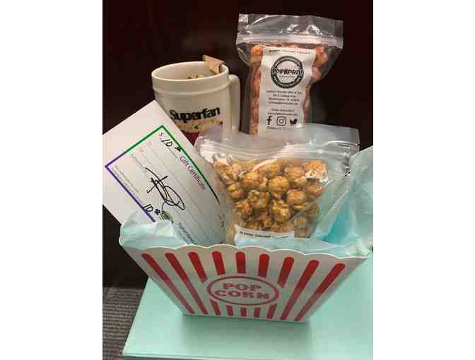 This gift basket is perfect for any popcorn lover! This package includes popcorn that is specially made at the local Bloomington shop: PopKorn Kernels with a Twist!
