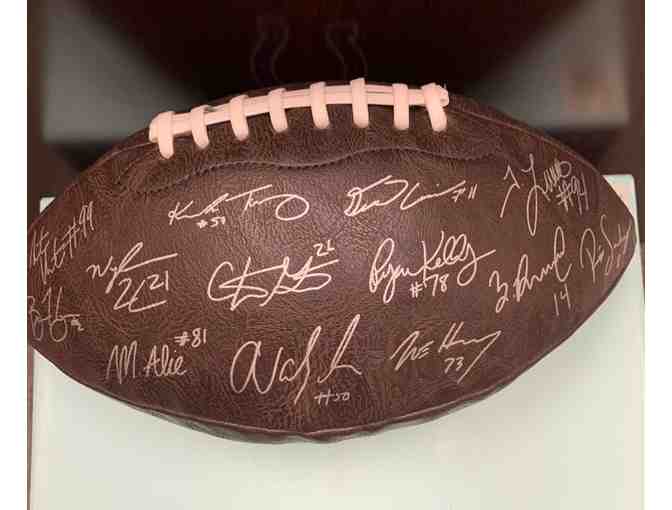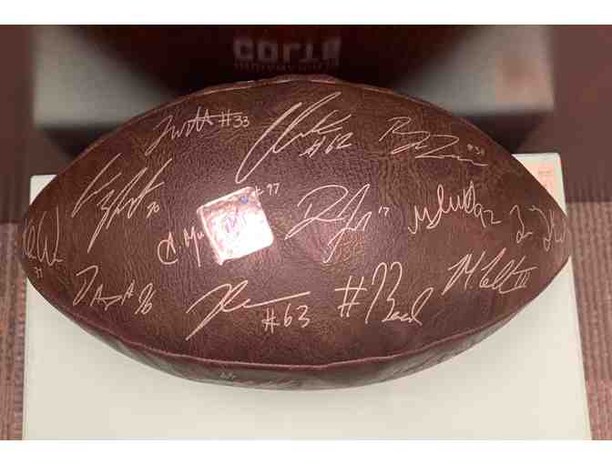 Football is signed by members of current team! See photos of each side of the football to find your favorite player's autograph.