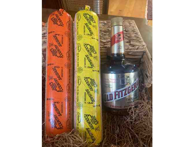 Old Fitz is true favorite distilled in Louisville and Jake's Fresh Country Sausage is made in Bardstown. The sausage is frozen to preserve freshness.