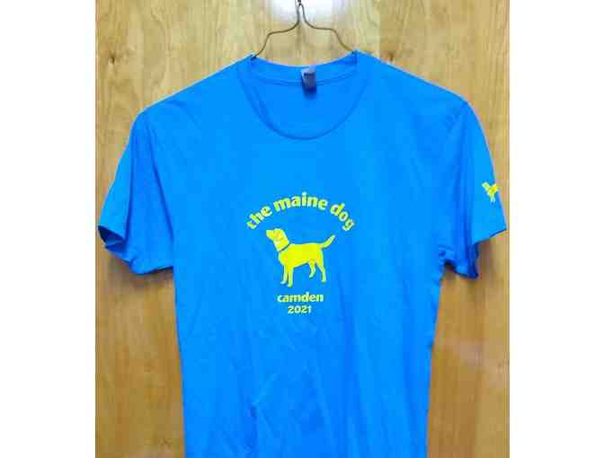 Bright Blue color with Maine Dog Log Camden Maine on front