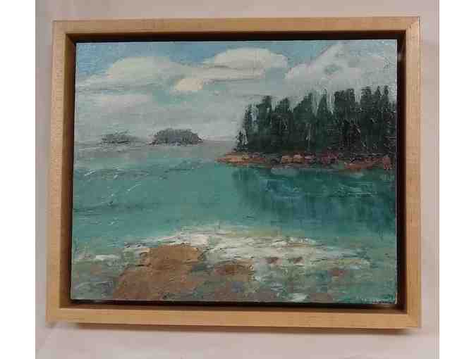 "Listening to the Sea" 8" x 10" oil and cold wax painting in a floating wooden frame captures the essense of the sea.