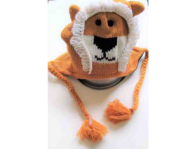 Knitted with flaps for ears and cute lion design - not just for kids!