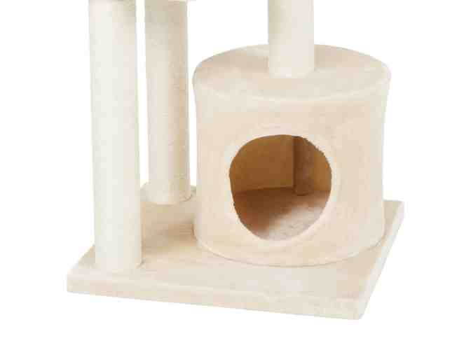 Your kitty is going places with this cat tree! There’s a perch to lounge on, a penthouse bed for catching z’s, a cozy private condo and a toy to swat and bat. Oh, and there’s plenty of scratching room with 3 scratching posts that are fully wrapped with sisal rope. Sisal rope has the scratchable texture cats love because it feels a lot like scratching on tree bark, a feline favorite. Scratching is essential to keeping claws healthy and it feels good for kitties too. The private condo is the perfect hangout spot for when your kitty wants some quiet time. That pretty much covers all the purr necessities—scratching, lounging, napping and playing. The double-layered baseboard provides extra stability as they scratch the posts and jump on and off, and it’s sturdy enough for larger kitties