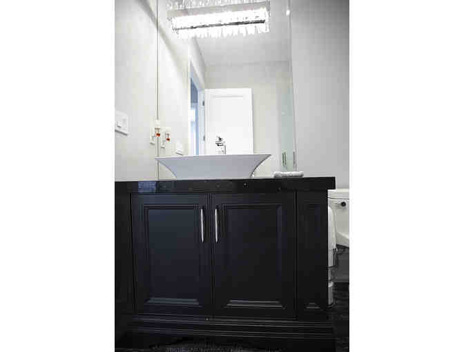 Refresh your home with a beautiful new custom made vanity, up to 36 inches with two doors, painted in any colour, with a stone counter top. Sink faucet not included. Valued at $2,500.
