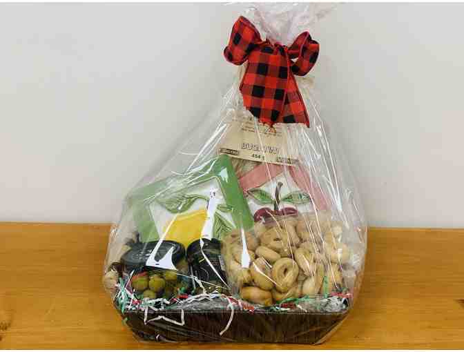 Purchase this lovely basket with two (2) fruit-themed trivets, Italian pasta, gherkin-stuffed manzanilla olives and capers in vinegar.