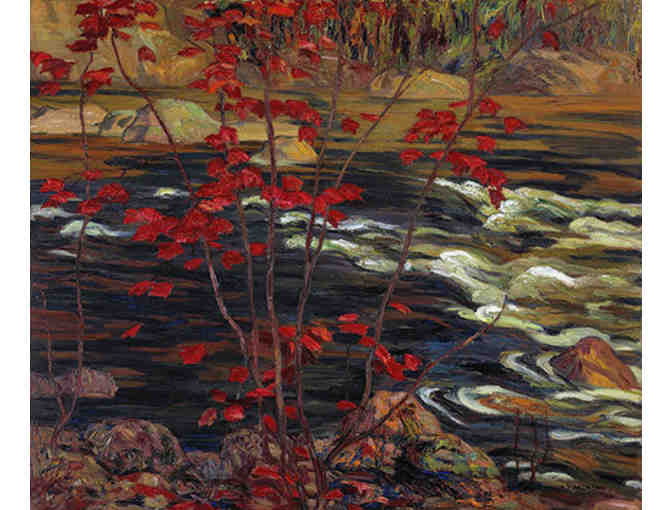 A.Y. Jackson was a founding member of the Group of Seven. "The Red Maple" was painted in 1914 and stands out as one of his and Canada's famous paintings. This landscape is based on a sketch from nature produced along the Oxtongue River in Algonquin Park. With its foreground screen of fragile young branches and fluttering red leaves set against a background of churning rapids, this composition captures a distinctive natural phenomenon in Canada.