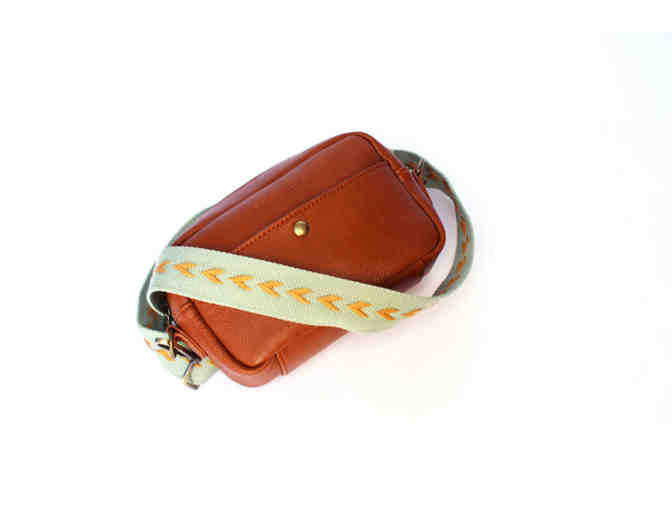 THE BOWIE PACK IN CAMEL with FRANKIE STRAP IN OCEAN & HONEY