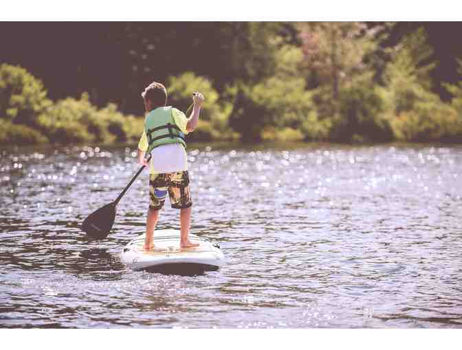 ONE paddleboard is available for river exploration and fun. The paddleboard will support one adult solo OR an adult plus a child who's under 100lbs -- so you can bring your kiddo too!