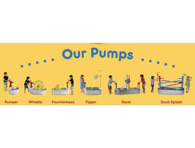 Kid-powered, interactive water pumps for preschool birthday parties.