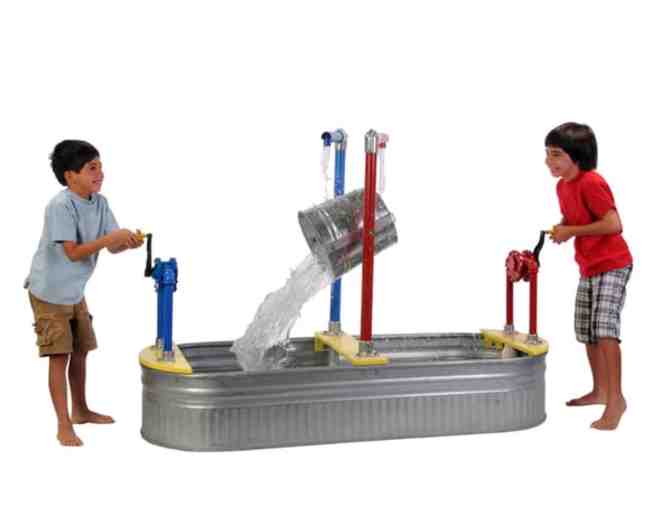 Children ages 3-8 will enjoy pumping water to make a wheel turn, spray water from a fountain into the air, see what happens when water fills a tipping bucket, race ducks and use funnels to explore with water.