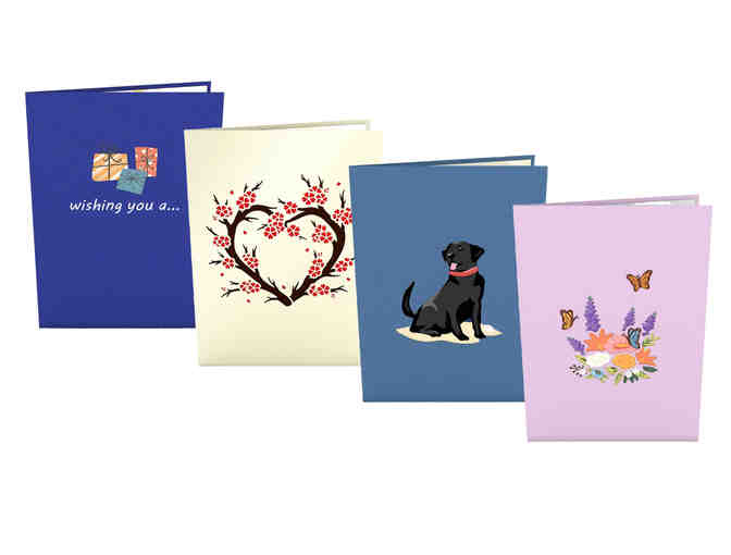You will receive four (4) beautiful cards from Lovepop, each one will include one blank envelope and the Lovepop Note, a little note card that slides away with your own personal touch.