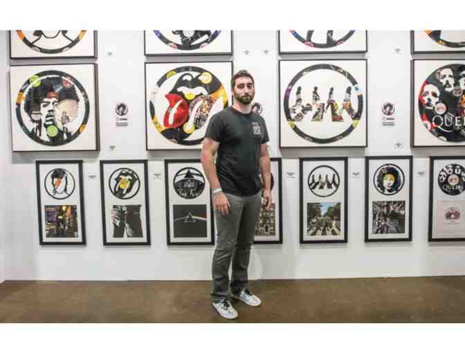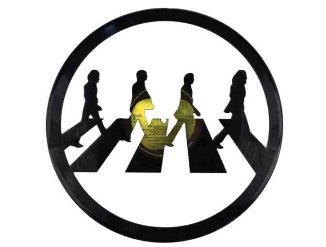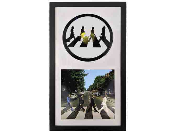 Deadwax Art hand carved vinyl record art made from an original Abbey Road vinyl record, framed with the original album cover.