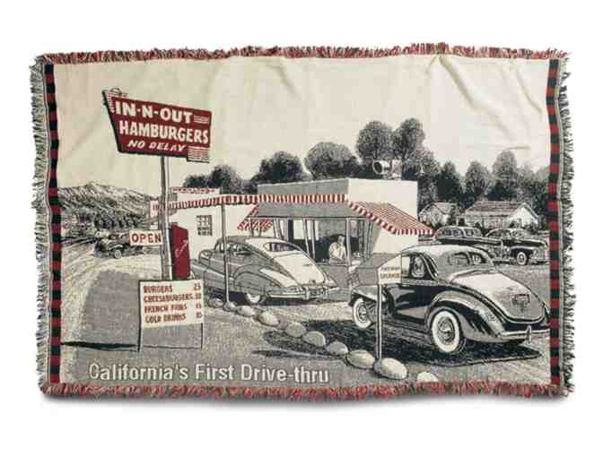 From In-N-Out this cozy blanket features their first restaurant in Baldwin Park, California.