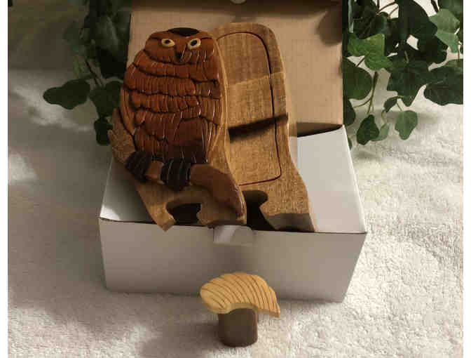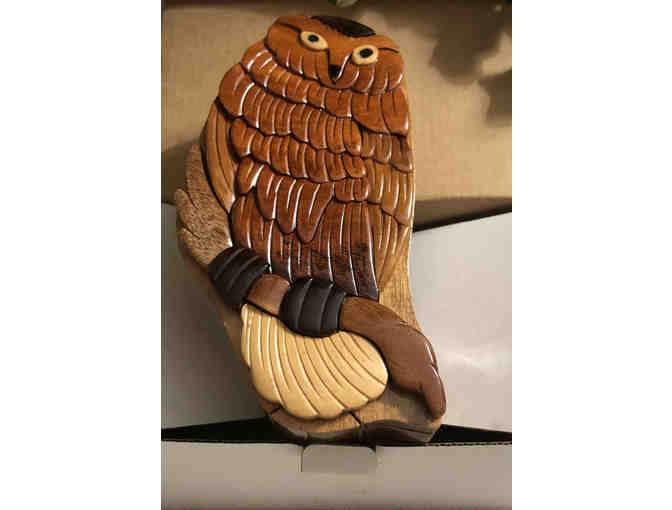 Wooden Carved Jewelry Box - A Burrowing Owl