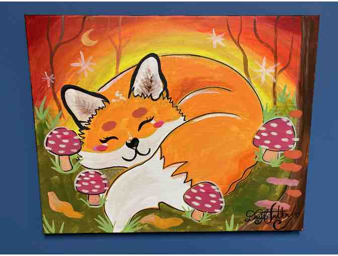 Gift certificate redeemable for one (1) 2022 summer camp at Wyoming Fine Arts Center (valued up to $175) and fox painting on wrapped canvas. Approx. size 20 x 16".