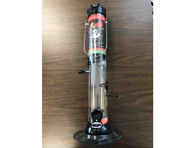 Fully assembled clever clean and fill seed tube feeder from Droll Yankees donated by Port Hardware.