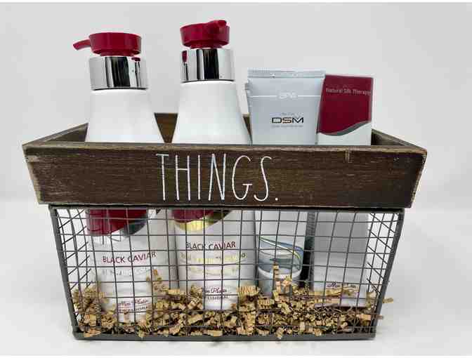 Fabulous basket of hair + beauty products donated by Hairstylist, Karen Mayer!