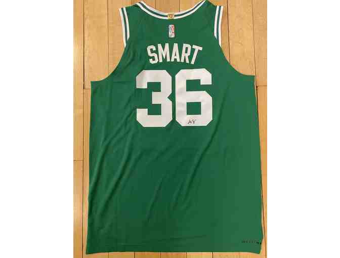 Wear your very own Marcus Smart jersey, autographed by #36 himself, as you cheer on the Boston Celtics in the playoffs. You will be the hit of any watch party wearing the jersey of this year's Defensive Player of the Year. A certificate of authenticity is included.